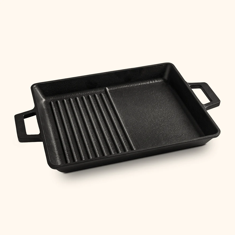جريل مستطيل من الحديد الزهر مصمم للشوي والتشويح بدقة واحترافية.