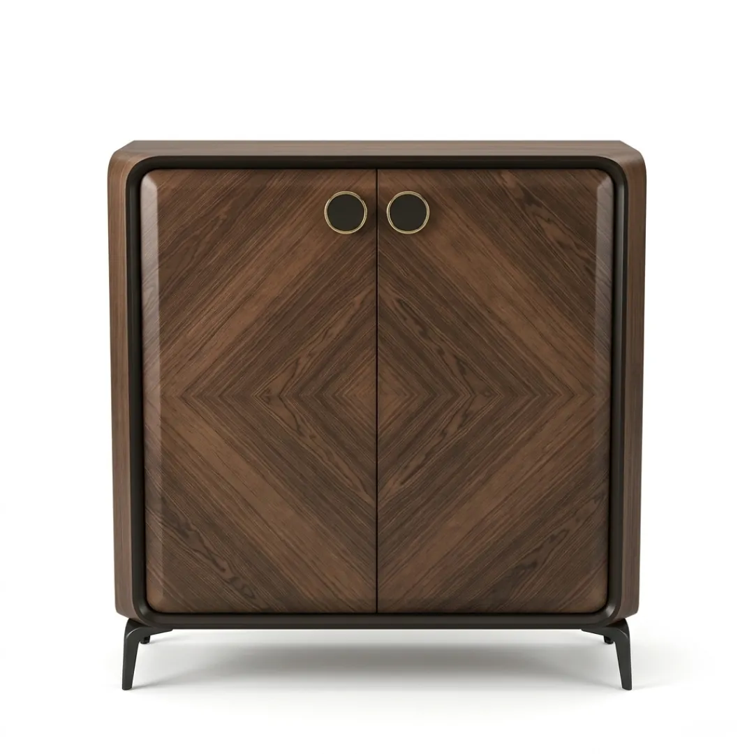 تصميم كلاسيك أنيق بلون بني غامق يعطي إحساس بالفخامة والدفء، مناسب للمداخل والمساحات المختلفة، مع تقسيم عملي يساعد على تنظيم الأحذية بشكل مرتب ومرن.