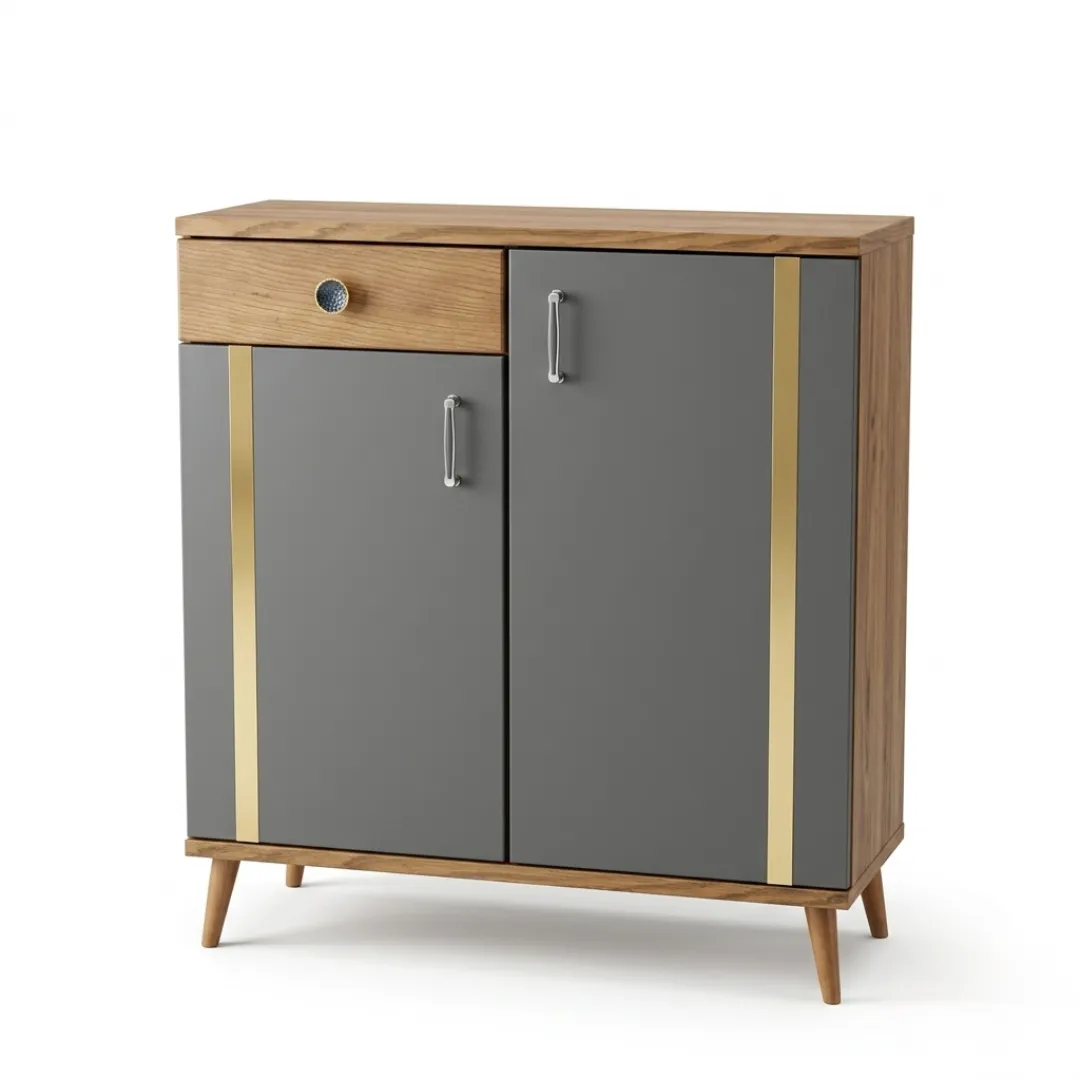 تصميم عصري بلمسة هادئة وأنيقة، يجمع بين اللون الرمادي العصري والتفاصيل الخشبية الدافئة ليمنح مدخل منزلك مظهرًا راقيًا ومنظمًا في نفس الوقت.