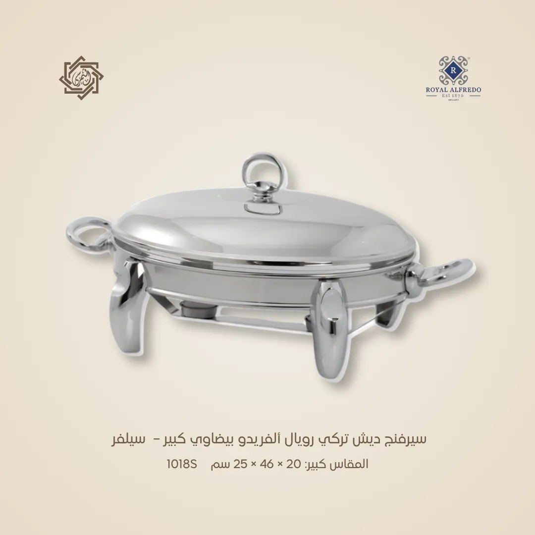 اجعلي عزوماتك ترتقي إلى مستوى أرقى الفنادق والأوتيلات مع سيرفنج ديش رويال ألفريدو، المصنوع من الستانلس ستيل التركي 18/10 عالي الجودة، ليمنحك مزيجًا مثاليًا من الفخامة والمتانة في آن واحد.