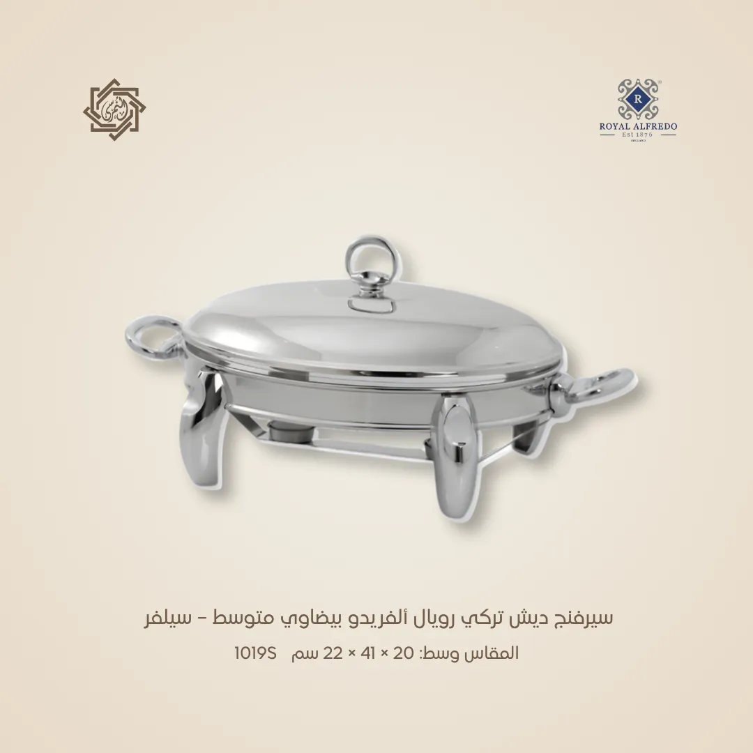 اجعلي عزوماتك ترتقي إلى مستوى أرقى الفنادق والأوتيلات مع سيرفنج ديش رويال ألفريدو، المصنوع من الستانلس ستيل التركي 18/10 عالي الجودة، ليمنحك مزيجًا مثاليًا من الفخامة والمتانة في آن واحد.
