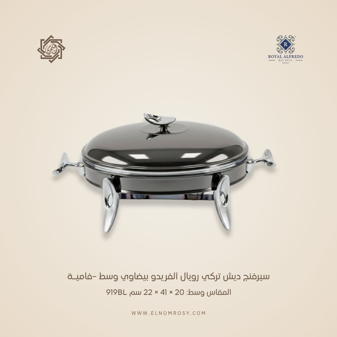 اجعلي عزوماتك ترتقي إلى مستوى أرقى الفنادق والأوتيلات مع سيرفنج ديش رويال ألفريدو، المصنوع من الستانلس ستيل التركي 18/10 عالي الجودة، ليمنحك مزيجًا مثاليًا من الفخامة والمتانة في آن واحد.