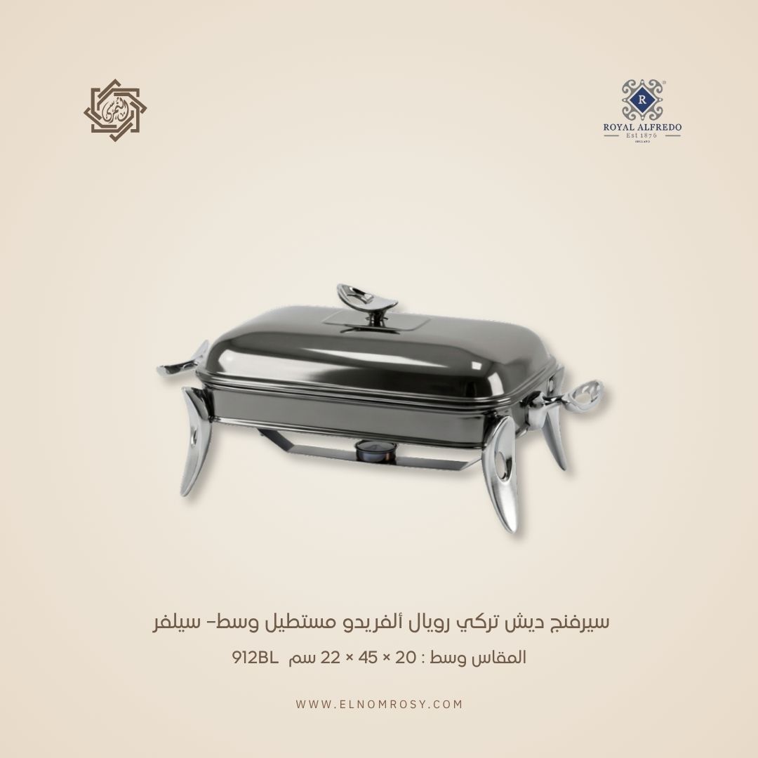 اجعلي عزوماتك ترتقي إلى مستوى أرقى الفنادق والأوتيلات مع سيرفنج ديش رويال ألفريدو، المصنوع من الستانلس ستيل التركي 18/10 عالي الجودة، ليمنحك مزيجًا مثاليًا من الفخامة والمتانة في آن واحد.