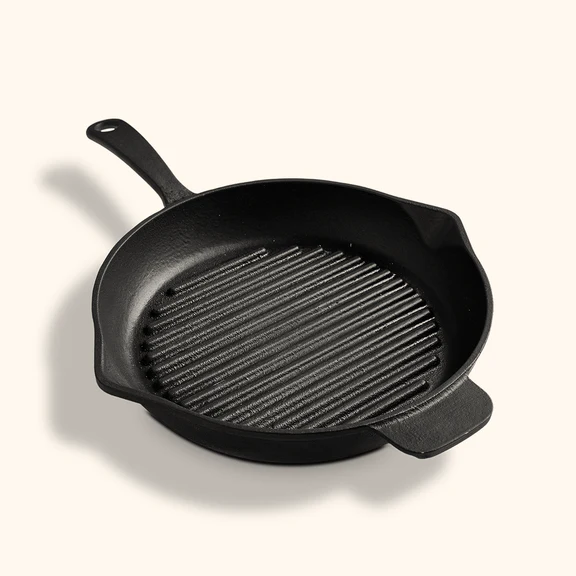 السطح المُخدّد يساعد على إبراز علامات الشواء الشهية على اللحوم والخضروات، مع الحفاظ على العصارة والنكهة بفضل التوزيع المتساوي واحتفاظ الحرارة لفترة طويلة.