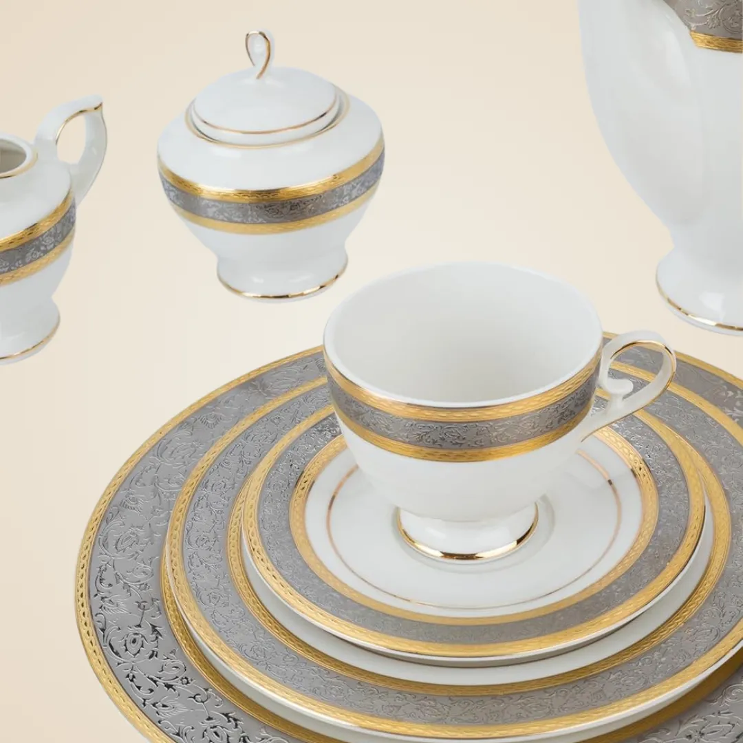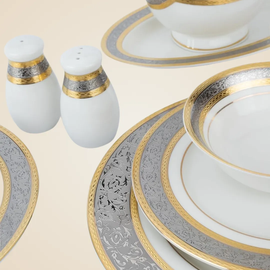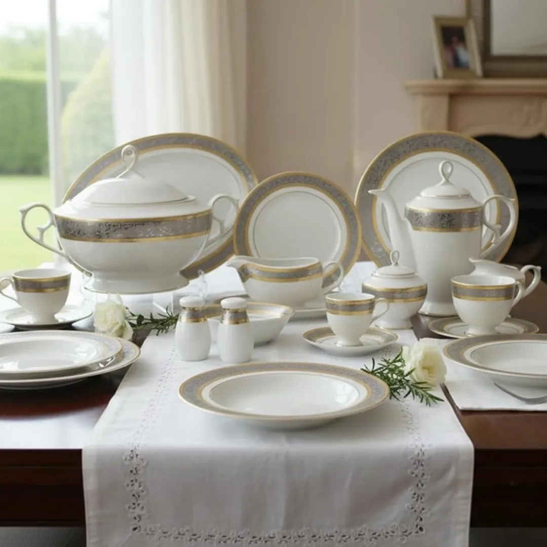 الطقم متكامل بعناية ليغطي كل احتياجات السفرة، سواء للعزومات الكبيرة أو الاستخدام اليومي الراقي، ويعكس ذوقك في اختيار التفاصيل الراقية.