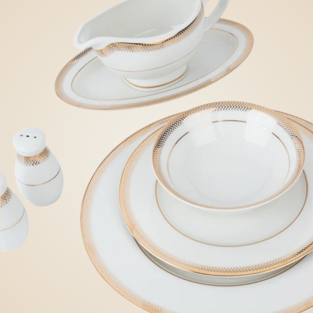 الطقم متكامل بعناية ليغطي كل احتياجات السفرة، سواء للعزومات الكبيرة أو الاستخدام اليومي الراقي، ويعكس ذوقك في اختيار التفاصيل الراقية.